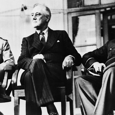 In November 1943, Stalin, Roosevelt and Churchill all met together for the first time to discuss the progress of World War Two. The meeting was held in Tehran over four days. (Photo: Joseph Stalin (left), Franklin Roosevelt (centre), Winston Churchill (right). Credit: Keystone/Hulton Archive/Getty Images)