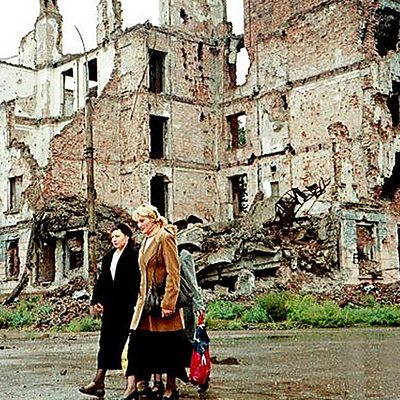 The arts journalist Mikail Eldin tells Matthew Bannister about the horrors of becoming a fighter in the Chechen wars, and the long-term impact this had on his life. His book is called The Sky Wept Fire: My Life as a Chechen Fighter. Also, the woman they call the 'Mother Theresa of Egypt' reveals what motivates her to change the lives of children growing up in Cairo's 'Garbage City'. Pakistani writer Fatima Bhutto discusses the violent death of her father and aunt, and the challenge of coming from a political dynasty. And we hear from an American high school teacher and one of his students who built a satellite and watched it go into space. (Picture: Local residents walk past destroyed buildings in Grozny, Chechny in 2001. Credit: Associated Press)