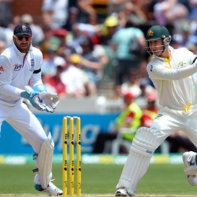 Australia take control in the 2nd Ashes Test declaring on 570-9. England close on 35-1.
