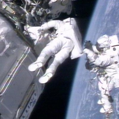 In December 1998, NASA astronaut Bob Cabana and Russian cosmonaut Sergei Krikalev were the first on board the International Space Station, after the first two modules - Zarya and Unity - were joined together in orbit. PHOTO: AP / NASA TV