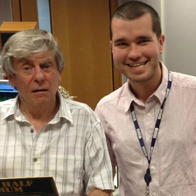 Melvyn Hayes shares some of his favourite comedy quotes from fellow comedians and actors. (Pictured with producer Richard Latto in BBC Radio Solent's studios in 2013)