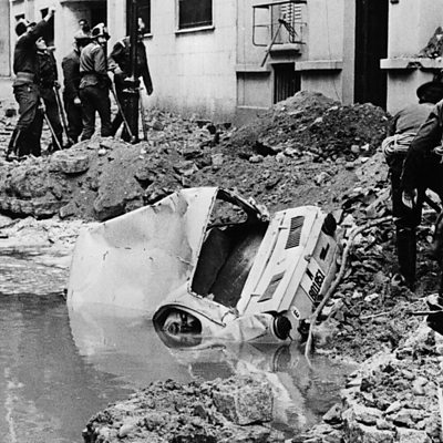 On December 20, 1973 Luis Carrero Blanco, the Spanish PM was killed by a massive bomb which was detonated under his car in Madrid. It had been planted by the Basque separatist group ETA. He had been right-hand man to Spain's dictator Francisco Franco. Photo: Spanish police examine the aftermath of the bomb attack. Hulton Archive/Getty Images.