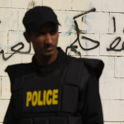Egypt's Muslim Brotherhood denies accusations of terrorism, after a bomb explodes a day after the government designated the group a "terrorist organisation". Also, as the leaders of Kenya and Ethiopia head to South Sudan for talks, is it down to African governments to solve Africa's problems? Picture: A riot police officer stands guard at the scene of a bomb blast along a wall covered with graffiti around the Al-Azhar University campus in Cairo"s Nasr City district The graffiti says, "Down with military rule." Credit: Reuters / Amr Abdallah Dalsh