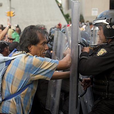A special essay from Will Grant considering the political challenges ahead for Mexico, Venezuela, Honduras and El Salvador in 2014. Voters want both security and prosperity - but which leaders do they trust to deliver them? After the death of Hugo Chavez, is anyone capable of rallying the region's masses and inspiring such confidence? With spiraling drug and gang violence, a string of disputed elections and ever-present poverty, each electorate has its own pressing concerns. Introduced by Pascale Harter. Producer: Polly Hope. Photo: Riot policemen use their shields to push teachers and supporters blocking main streets to protest against education reform in Mexico City on November 26, 2013. YURI CORTEZ/AFP/Getty Images