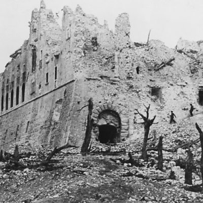 In January 1944 the allies launched a major offensive against the Germans in Italy. It would be one of the longest battles of the Second World War, lasting four months and causing over 100,000 casualties. We hear from two allied veterans, one British, one Polish. Photo: Abbey of Monte Cassino in ruins in ruins after it was bombed by allied forces (Keystone/Hulton Archive/Getty Images)