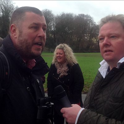 Fitz leads a group of around 40 people on a walk around Victoria Park in Plymouth and chats to some fellow walkers including Tony Whitehead from the RSPB...