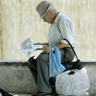 In recession-hit Athens, Maria Margaronis meets the workers still producing with love and pride. Although falling sales and an unpredictable economic climate mean times are growing tougher, she finds that Greeks have weathered storms in the past, and are ready to do so again. And, Abigail Fielding Smith reports from Damascus, where she discovers a real-life Romeo and Juliet. She talks to the Syrian rebel who has found love against the odds - with the daughter of a secret policeman. As the conflict intensifies, such romance offers respite from an increasingly precarious existence. (Photo: An elderly man sits in the shade next to a wall of water at the Syntagma Square fountain in central Athens. Credit: Louisa Gouliamaki/AFP/Getty Images)