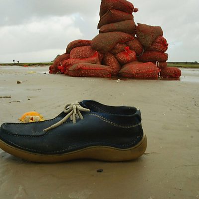In February 2004, 23 Chinese immigrants drowned while picking shellfish in Morecambe Bay, off the coast of north-west England. Witness speaks to two of the people who helped with the rescue operation. (Photo: A lone shoe and haul of cockles on the beach in Morecambe Bay where the Chinese cockle pickers lost their lives. Credit: Chris Furlong/Getty Images)