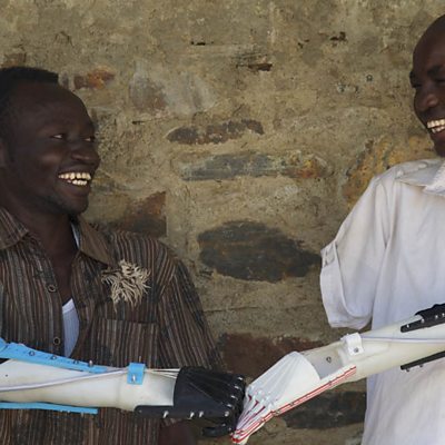 Daniel Omar lost both his arms in a brutal bomb attack. He is one of many in South Sudan to suffer a similar fate. But Daniel counts himself lucky because he is also the beneficiary of a project inspired by his story. When he heard about Daniel, the entrepreneur, Mick Ebeling, launched Project Daniel - a project to use affordable 3D printing to print Daniel a prosthetic arm. Click talks to Mick Ebeling about the use of this technology to provide arms for amputees, and about his organisation, Not Impossible Labs. Ten musicians gathered at the end of last month at the Centre for Digital Music at Queen Mary College in the east end of London, to give a premiere performance on an entirely new digital instrument. But when Roland Pease arrived, expecting the latest in digital sophistication, he found what had been put together was little more than a speaker cube, with a little extra electronics thrown in. Roland Pease reports on an intriguing new take on cubism. (Photo: Project Daniel - Mohammad and Daniel wearing prosthetic arms. Courtesy of Not Impossible Labs)