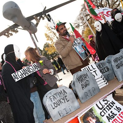 Several countries are keen to join the US, UK and Israel in adding unmanned aircraft to their military arsenals. However, due to controversy surrounding their use in Pakistan, few are keen to call them 'drones'. Owen Bennett-Jones discovers what's in a name when it comes to war. In Afghanistan, David Loyn meets Abdul Rasul Sayyaf, a military leader accused of war crimes. Now running for office, he sees the forthcoming elections as a chance for vindication. (Photo: Anti-war activists hold a rally against US drone attacks in front of the White House in Washington,DC. Credit: Nicholas Kamm/AFP/Getty Images)