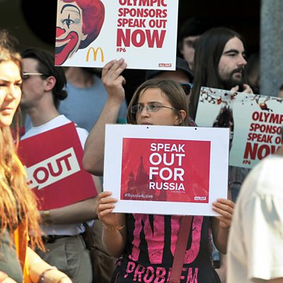 What's the point of the Sochi protests? Gay rights activists across the world are holding a day of protests against the Russian government, just two days before the Winter Olympics begin in Sochi. They are in particular calling on the sponsors of the Games to speak out against what they call "anti-gay laws". We are live at the protest in London and in Sochi, to hear protesters and Russians talk to each other.
