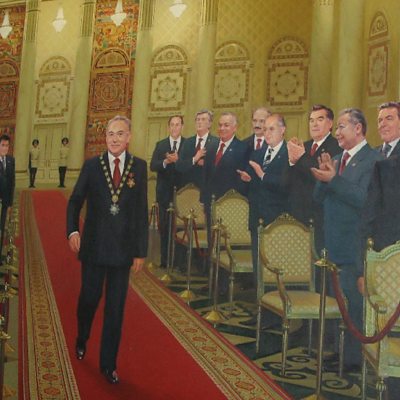 Saddam Hussein ruled Iraq between 1979 and 2003. Yet years after his death, many others are still called Saddam Hussein - some named after the dictator. Prashant Rao meets some of them, and finds out how the name continues to affect their lives. The Kazakh government has expressed a desire to change the country's name - to stop being 'one of the stans'. Abdujalil Abdurasulov has been finding out that the state's obsession with image extends far beyond this. (Photo: Portrait of Kazakh President Nazarbayev greeted by a troupe of global leaders, which hangs in the presidential palace in Astana. Credit: Abdujalil Abdurasulov)