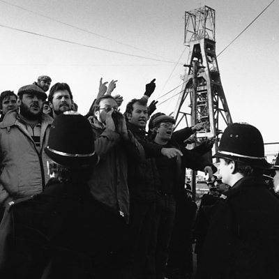 In March 1984, coal miners across Britain went on strike over planned pit closures. One former miner recalls the clash between strikers and police in 'the Battle of Orgreave'. (Photo: Striking miners picketing Tilmanstone Colliery in Kent, March 1985. Credit: Steve Eason/Hulton Archive/Getty Images)