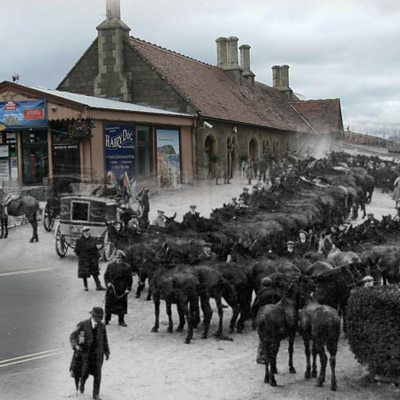 The phenomenal success of the 2011 film ‘War Horse’ brought the plight of livestock on the Western Front to the attention of millions of cinema-goers. To the vast majority of the British public it had remained a largely unknown aspect of World War One. In the early weeks and months of the conflict it became obvious that men and weapons wouldn’t be enough to wage a ‘modern’ war in Northern Europe. The government knew that food, munitions and a whole array of supplies would have to be transported quickly and efficiently. Equines were the answer. Tough, resilient and used to carrying weight, draught animals were needed in enormous numbers. It meant a new role not just for the military’s own horses and ponies or those requisitioned from owners in the UK, but also animals imported from overseas. So mules from the Americas found their way to the seaside town of Minehead. Why Minehead? Firstly, the coastal resort was within easy reach by rail of Avonmouth Docks. Secondly the surrounding Exmoor countryside could boast suitable fields and farms where the mules were able to feed and rest after their transatlantic journey before being moved to the front line. From the railway station the animals would have been driven in packs along The Avenue in the heart of the town. This would have created quite a spectacle to the local onlookers, although railway staff and passengers were used to seeing equines transported by train. Horse wagons carrying polo ponies and hunters were a common sight on the branch line between Bishops Lydiard and Minehead in the years before the war. When the mules needed moving across the county it would have made sense to use the existing horse wagons, perhaps even converting them by taking out the internal wooden fittings to create a bigger, open space. After all, more room meant more mules. In 1930 the plight of WW1 mules and other equines was recognised by Dorothy Brooke who set up a charity to run animal hospitals. For some time there has been debate and argument about whether the mules were shod during their stay in the Somerset countryside or later once they had arrived in France and Belgium. Certainly the discovery of rusty mule shoes in the hamlet of Bratton, just outside Minehead, indicates that some, if not all the mules, visited the forge which operated there at the time. A sculpture of two mules forms part of a monument in London’s Park Lane dedicated to animals that served and died alongside British and allied troops in war. Location: Miinehead Railway Station, Minehead, Somerset TA24 5BG Image shows Minehead Railway Station now and then, courtesy of Ms Daphne McCutcheon Presented by Rita Tremain