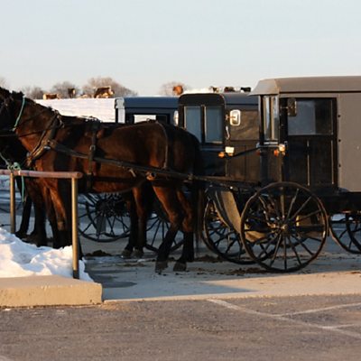 Beth McLeod learns why the Amish way of life is thriving, not merely surviving, in a globalised, 21st-century America; Jonathan Fryer takes an epic train trip from Volgograd to Ashgabat, taking in Russia and three of the former members of the USSR now better known as "the Stans" - Kazakhstan, Izbekistan and Turkmenistan. Everywhere along both their journeys there are signs of the past living on well into the present - and hints at the hard, modern choices determining how people live now. Presenter: Pascale Harter Producer: Polly Hope Photo: Horse-drawn carriages belonging to Amish smallholders - neatly parked up on asphalt in Lancaster County, Pennsylvania. (Photo: Beth McLeod)