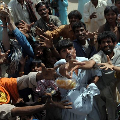 Thar is one of Pakistan's most remote regions. It's a desert area in the south, around 200 miles from Karachi, and has recently been hit by a devastating drought and famine. It's reported that since December around 100 children have died due to malnutrition. Riaz Sohail has been in Thar for BBC Urdu and gives his personal insights of reporting such a challenging and upsetting story. No English Please, We're Gambian The Gambian President Yahya Jammeh announced this week that he wanted to get rid of what he calls a colonial relic - the English language. He's not yet specified whether he is going to replace English with Mandinka, Wolof or Fula, the other three main languages in the country. Nearly six months ago President Jammeh announced that his country would be pulling out of the Commonwealth. BBC Africa's Esau Williams explains. How's Your Pidgin? Finding a common African language has been the subject of discussion for years across the continent. In Nigeria there was a move to create a language like an African version of Esperanto but it never got off the ground. But there's another language that was born out of necessity that crosses the boundaries of West African countries and that is pidgin. Peter Okwoche and Akwasi Sarpong give us a masterclass. Kyrgyzstan's Robot Dancing Sensation Atai Omurzakov has become an internet sensation with his incredibly robot-like dance. The 21-year-old has also been a hit with judges, winning Cesko Slovensko Ma Talent (the Czech and Slovak version of the Got Talent franchise) and getting to the finals of Ukraine's Got Talent with his jerky "electric boogie". His performances have gained him a reputation across the world and he's hailed as a hero in Kyrgyzstan. His latest appearance has been on BBC Kyrgyz here in Broadcasting House. Gulnara Kasmambet will tell us how the 'Atai' went down on the fifth floor and why he's doing it all for his mum. Hear My Country: Syria It's the third anniversary of the start of the Syrian conflict and with that in mind we bring together three Syrian journalists from the Arabic Service to reflect on the music that defines their nation now. With Soumer Daghastani, Kassem Al Mazraani and Mamdouh Akbiek. The tracks played are: Al Rosana performed by Sabah Fakhri, Wadi Al-Safi and Simon Shabeem & Quantara; Ala Mowj El Bahr by Lena Chamamyan and Sha'amu performed by Fairuz. No Home, No Vote BBC Hindi's Nitin Srivastava is on the election trail travelling across India talking to voters ahead of next month's general election. His latest stop is Uttar Pradesh, where more than 40,000 people, mostly Muslims, were displaced after violence erupted with Hindus last year. Nitin planned to go to a refugee camp to find a case study of someone who now can't vote because they didn't have time to pack their identification when they fled their home. Instead of finding one, he has found hundreds and hundreds of families with the same story. Nitin will send us a report of what he's discovered on his journey through the refugee camps. Online Greatest Hits Fifi Haroon gives the low down on the top-hitting stories across the Language Service websites, including naked tourists in Peru and reluctant Sri Lankan hangmen. Image: Pakistani drought-affected people receiving food aid from an NGO Credit: Getty Images