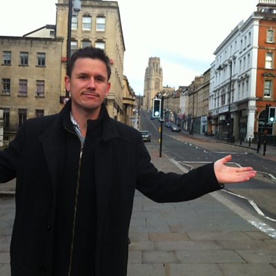 Artist Luke Jerram talks to Martin about his water slide idea on Park Street in Bristol