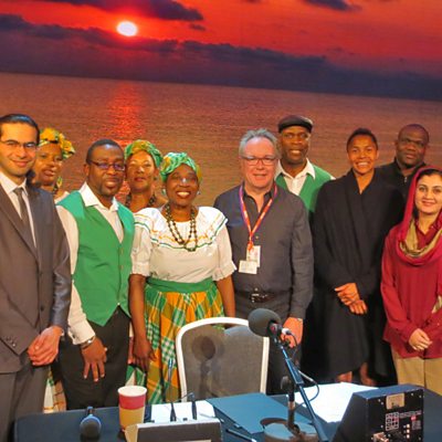 As our 'Freedom Season' comes to an end, Outlook brings together guests from around the world in the BBC's Radio Theatre - all of them have experienced a personal journey to freedom. Tom Hart Dyke is a horticulturist who was kidnapped by an armed gang in the Colombian rainforest while hunting for rare orchids. He was held hostage for nine months, and kept himself going through the ordeal by creating gardens in the jungle. Gertrude Shotte had a dramatic escape from the volcanic eruption that destroyed much of the Caribbean island of Montserrat. She has formed a choir with other exiles from Montserrat in London who sing to remember their lost home. Humaira Awais Shahid, dubbed "the most unmanageable woman in Pakistan", is a journalist and politician whose fight to free woman from acid attacks, forced marriage and child prostitution became very personal. Ali Abdulemam was a leading Bahraini blogger and free speech advocate who was imprisoned for his writing. He was also forced to spend two years in hiding, confined to a small room, before being smuggled out of the country to safety. Ayo is a German born singer-songwriter with a Nigerian father and Romanian mother. She was sent into foster care and went on to become a double-platinum selling musician. John Bosco Nyongi is a Ugandan who had to flee his country when his secret life as a gay man was broadcast on national radio. He's now been granted asylum in the UK, but at one point was deported back to Uganda where he was attacked and imprisoned.