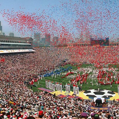 During the opening ceremony of the USA World Cup in 1994, Diana Ross missed her perfectly choreographed penalty. Listen back to archive audio of Alan Green and David Pleat describing the now infamous moment - "a dubious omen" - as we learn details of the opening ceremony for the 2014 World Cup. This year's opening kick will be taken by someone wearing a mind-controlled robotic suit. More details on Saturday Edition, April 5th from 8pm