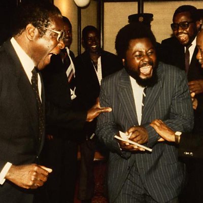 In April 1980, Robert Mugabe became the first prime minister of Zimbabwe - formerly Rhodesia. He had just won historic elections, ending years of white minority rule. We hear from Wilf Mbanga who was once part of Mr Mugabe's inner circle. (Photo: Wilf Mbanga (centre) tells joke to Robert Mugabe (L) and Julius Nyrere of Tanzania (R) , Delhi, 1984. Credit: Bester Kanyama)