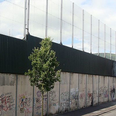 Andrea Catherwood examines the movement for integrated schools in Northern Ireland. She visits schools in traditionally divided areas of Belfast and asks whether educating children together is a key step towards permanent peace. Do integrated schools work? Who chooses them? And why are there so few of them? (Image: A Peace Line in Belfast, Northern Ireland, separating the Falls Road and Shankill Road areas just down from Lanark Way. BBC copyright)