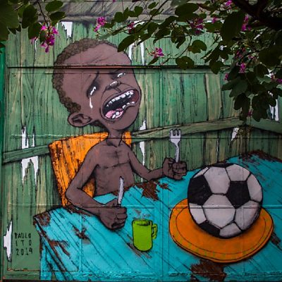 As Brazil gears up to host the World Cup, grumbles of discontent are getting louder. Miles Warde reflects on Brazil's troubled history, and asks whether it is really a society where, no matter what the differences, everybody is equal? Meanwhile, Max de Haldevang describes his visit to Osh, Kyrgyzstan, scene of horrific ethnic violence between ethnic Kyrgyz and Uzbeks in 2010. He meets members of the Uzbek minority whose relatives have been met with brutality in the aftermath of the clashes, still known as 'the War'. Presenter: Pascale Harter Producer: Ben Weisz Photo: Graffiti on a wall of a public school criticizes the hosting of the World Cup on May 24, 2014 in Sao Paulo, Brazil. Photo credit: Victor Moriyama/Getty Images