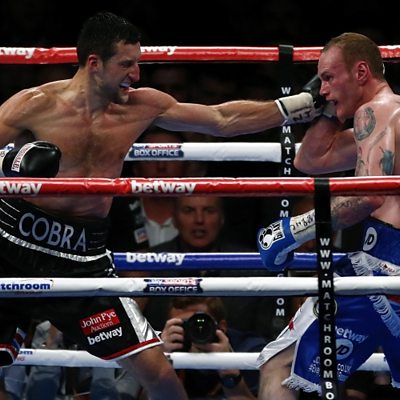 Carl Froch KOs rival George Groves in the 8th round of their rematch in front of 80,000 fans at Wembley Froch called the punch the best he'd ever landed in his career. The win means he retains his WBA and IBF world super-middleweight belts.