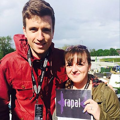 Emma a' còmhradh ri Greg James aig BBC Radio 1's Big Weekend, Glaschu 2014.