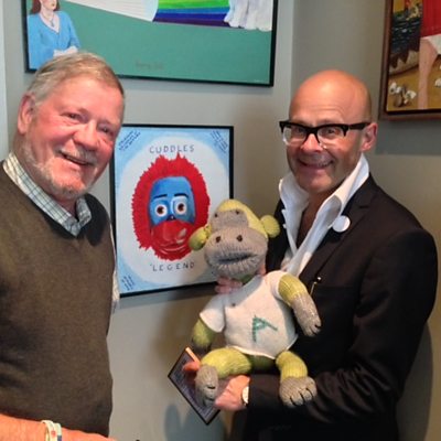 Harry Hill with Billy Butler talking about his artwork at the Wirral Festival of Firsts.