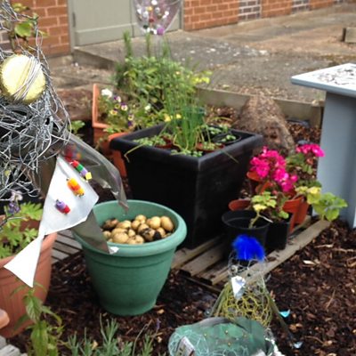 Ben Jackson meets some older students at Hind Leys Community College in Shepshed. They're not only growing great produce, but also creating works of art to go along side it.