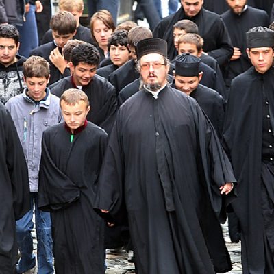 Owen Bennett Jones introduces two stories of Christian identity and life in small communities built on faith. Malcolm Billings is on a personal pilgrimage to the world-famous - and all-male - Greek Orthodox enclave on the peninsula of Mount Athos. He finds an unspoiled landscape and a calmly measured rhythm to life, as well as the unexpected detail; even monasteries, it seems, occasionally resort to buying frozen food from a corner shop these days. In southeastern Turkey, Diana Darke learns why the long-scattered world community of Syriacs is beginning to regroup and return to their long-derelict homes and churches in the Tur Abdin region. In 1915 many of their number were massacred, but there's a resurgent sense of pride and an ongoing process of reclamation., Producer: Polly Hope Photo: Students from a priestly school walk in Karyes, the seat of the clerical and secular administration of the Mount Athos monastic state, on October 9, 2011. (SAKIS MITROLIDIS/AFP/Getty Images)