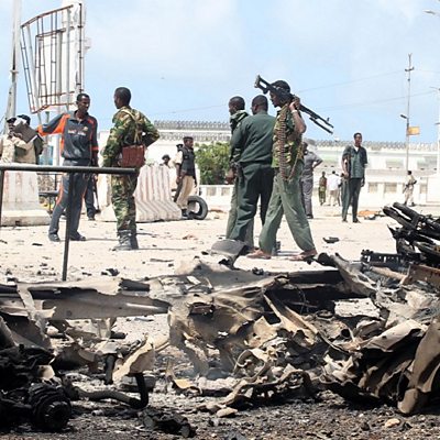What can you do when you see you've got a missed call and a text... from al-Shabaab? Mary Harper reflects on the unnerving communications she's received from the militant fighters who have intimidated targets across Somalia and East Africa. And there are tidings of a new barbarian invasion of Rome - though this time in feathered form: Alan Johnston feels the menace of the thuggish seagulls moving into the city. Producer: Polly Hope Photo: The remains of a car on the streets of Mogadishu on July 5, 2014 after it exploded outside the Somali parliament building in an attack claimed al-Shabaab. (ABDIFITAH HASHI NOR/AFP/Getty Images)