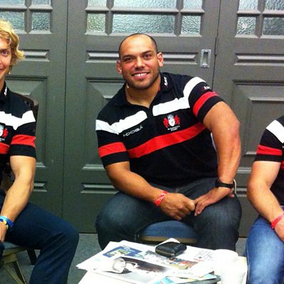 Gloucester Rugby stars Billy Twelvetrees, John Afoa and Greig Laidlaw.