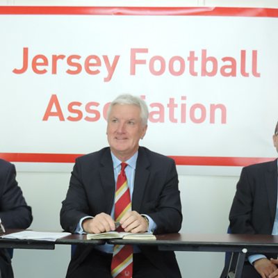 On the day Jimmy Reilly is named boss, Jersey FA President Phil Austin reveals to James Hand they're in talks with FIFA about entering a side into international competitions.