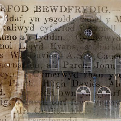 Beryl Harris sy’n dweud hanes torcalonnus ei nain yn erfyn ar ei mab hynaf, Griffith Jones, ewythr Beryl, i beidio ymuno â’r fyddin wrth iddo dorri ei enw yn y llyfr ymrestru mewn cyfarfod recriwtio yn ysgoldy Capel Ebenezer, y Ffôr, yn 1914. Cafodd Griffith ei ladd yn y cyrch enwog ar Goed Mametz yn 1916 – un o frwydrau’r Somme a laddodd nifer fawr o Gymry’r 38th Welsh Division. Roedd Griffith a chwech arall wedi eu hysbydoli i ymuno yn y fan â'r lle wedi i'r Parchedig John Williams siarad yn y cyfarfod. Yn ôl hanes y teulu fe gafodd mam Griffith orchymyn gan y gweinidog i fod ddistaw a gadael i'w mab wneud ei benderfyniad ei hun tra roedd hi'n ymbil arno drwy ei dagrau. Yn ôl Beryl Harris, ni aeth ei nain, mam Griffith, ar gyfyl capel wedi hynny. Roedd John Williams yn weinidog dylanwadol oedd yn un o arweinwyr ymgyrch Lloyd George i recriwtio bechgyn Cymru i’r fyddin. Mae’r stori yma yn cael ei dweud yn y llyfr ‘Epil Gwiberod yr Iwnion Jac’ gan Geraint Jones hefyd, un arall o deulu Griffith Jones. Mae’n dweud: “Ar fwrdd y cymun fe daenwyd lliain gwyn, yn arwydd sacramentaidd o gysegredigrwydd y weithred o listio. Gerllaw, a’i phwys ar ganllaw y sêt fawr, erfyniai Nain druan, yn ei dagrau, ar i’w mab beidio â thorri ei enw ar y Llyfr Listio. ‘Paid â mynd, Guto bach, mi lladdan nhw di’. Arthiodd y duwiol Frynsiencyn arni i gau ei cheg, a pheidio â busnesu … Yno yng ngŵydd y Porthmon, y torrodd f’ewyrth ei enw, ei ddedfryd marwolaeth ei hun.” Lleoliad: Capel Ebenezer, Y Ffôr, Pwllheli, Gwynedd, LL53 6UP Llun: Darn o bapur Y Genedl Gymreig ar 6 Hydref 1914 drwy wefan 'Papurau Newydd Ar-lein' y Llyfrgell Genedlaethol; Griffith Jones drwy garedigrwydd Casgliad y Werin a Chapel Ebenezer, cyn iddo gael ei ddymchwel, gyda diolch i Alun Williams, y Ffôr ac ysgrifenyddes y capel presennol.