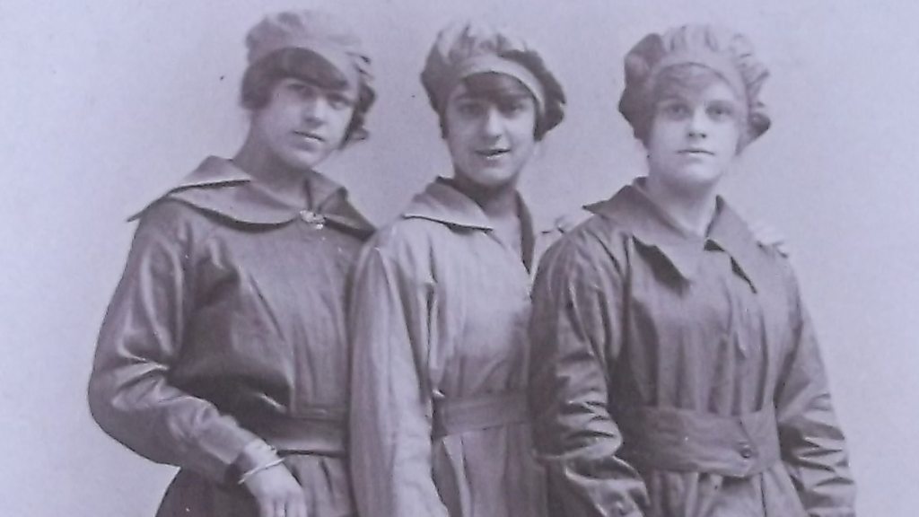 With labour in short supply during World War One, the factories in Lincoln had to enlist women to fill the gap left behind by the men going off to fight. They were known as munitionettes and were key in helping firms keep up with demand for aircraft, tanks, bombs and other war arms. Photographs show them on the lines in all the big manufacturing companies in the city. Girls as young as 16 were thrust into heavy industry operating machines around the clock. In 1915, the Women's War Register was set up mainly to provide women for work in the munitions factories. Women registered at labour exchanges by the thousands. David Lloyd George said ‘Without women, victory will tarry’. When the armistice came they lost their jobs to the returning soldiers. It wouldn’t be until the outbreak of World War Two that we would we see such high levels of female employment again. Location: Lincoln, Lincolnshire Image: Three munitionettes, courtesy of Irene Crosby
