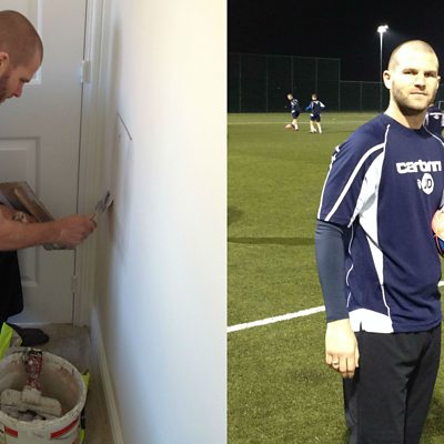 Friday marks the start of the first round of the FA Cup. It's the stage when the part time players from outside the professional ranks, get their chance to pit themselves against their full time counterparts. Craig Robinson is a plasterer by day and by night, a fearsome central defender for the smallest team qualified for the 1st round, Warrington Town. We follow Craig for a day in the build up to the biggest game in the clubs history when the take on Exeter City, a game televised live by the BBC Photo: Craig Robinson at work and then preparing to play in the FA Cup CREDIT Craig Wall)