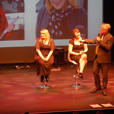 David Clayton and Kirsteen Thorne challenge Sophie Little and Jo Thewlis with the yes / no game at our Treasure Quest Live stage show in aid of the BBC Children in Need Appeal.