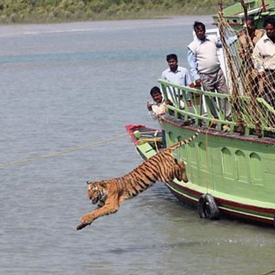 Bengal tigers are an endangered species, but on the border between India and Bangladesh there have been regular tiger attacks on people who live in the world's largest mangrove forest, the Sundarbans. In the past few months two more people have been killed, one of them a woman who was dragged into the forest by a tiger and never seen again. All of this has led to terrified villagers seeking revenge on the tigers, prompting wildlife groups to step in and try to protect the animals. Candida Beveridge has been to the Sundarbans and met people who've come face to face with a tiger and lived to tell the tale. Photo: Deshakalyan Chowdhury/AFP/Getty Images.