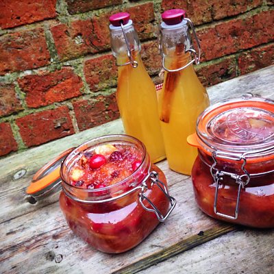 Mulling syrup: Add some of this seasonally spiced syrup to your warmed red wine, cider, apple or cranberry juice for a festive tipple. Zest and juice of 1 orange Zest and juice of 1 lemon 25-30 green cardamom pods 1 whole star anise 6 allspice berries 6 whole cloves 1 cinnamon stick 6 large slices fresh ginger 2 blades of mace 4 dried figs 1 handful sultanas 300g caster sugar 300ml water Combine everything in a saucepan and heat gently until the sugar has completely dissolved then turn up the heat and boil for 10 minutes or until reduced by one third. Strain through a sieve and decant into sterilised bottles and return the cinnamon stick to the bottle. Christmas chutney: This is perfect for serving with strong cheese or cold cuts over the festive period. 1 tablespoon rapeseed oil 3 Bramley apples peeled and cored and roughly chopped 3 eating apples such as Braeburn, peeled, cored and chopped into bite sized pieces Zest and juice of 1 orange 1 white onion, chopped 1 star anise About 1 thumb sized piece fresh ginger finely grated 1 heaped teaspoon ground cinnamon 1 teaspoon ground cloves 1 pinch ground green cardamom 2 blades mace 200ml cider vinegar 400g caster sugar 8 dried figs, roughly chopped 1 handful sultanas Pinch salt 200g frozen cranberries Combine everything except the cranberries in a large saucepan on a medium heat and stir well. Bring to a simmer and stir every now and then for about 20 minutes until the Bramley apples break down. Add the cranberries and simmer for about 10 minutes until they are soft but still whole. Decant into sterilised jars and store in a cool dark place until Christmas.