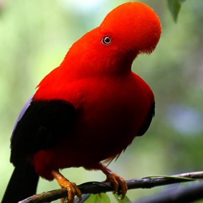Tweet of the Day is the voice of birds and our relationship with them, from around the world. Miranda Krestovnikoff presents the Andean Cock-of-the-rock from Peru. Deep in a cloud forest a female awaits the display of her displaying males. Gathered in front of her several head-bobbing wing-waving males, these males are spectacularly dazzling; a vibrant orange head and body, with black wings and tails, yellow staring eyes, and ostentatious fan-shaped crests which can almost obscure their beaks. Male cock-of-the rocks gather at communal leks, and their performances include jumping between branches and bowing at each other whilst all the time calling loudly. Yet, for all the males' prancing and posturing, it is the female who's in control. Aware that the most dominant and fittest males will be nearest the centre of the lekking arena, it's here that she focuses her attention.