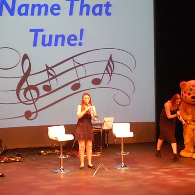 The Treasure Quest team face a musical challenge at our 2014 Children in Need stage show.