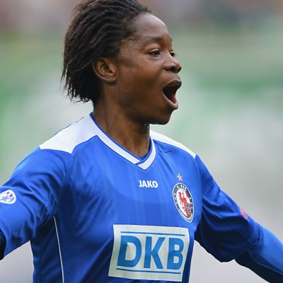 One of Africa’s leading footballer’s reveals the horrendous treatment she received from African football authorities. Rival teams had questioned Genoveva Anonma’s gender but instead of instigating proper medical gender tests, they simply forced her to strip naked straight after Equatorial Guinea won the Africa Cup of Nations. Sportshour's Sam Sheringham has been speaking to her about that harrowing event, and her early life Photo: Genoveva Anonma in action for her club team Turbine Potsdam (Credit: Getty)