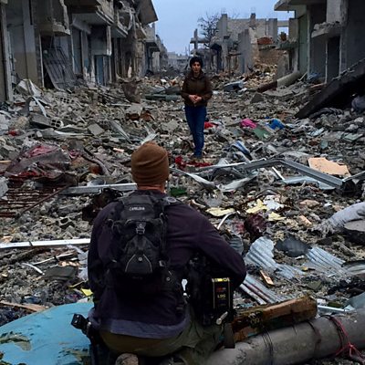 BBC Russian's Olga Ivshina and Nafiseh Kohnavard of BBC Persian compare frontline experiences - Olga in the rebel-held Ukrainian city of Donetsk, and Nafiseh in Kobane in Syria, recently recaptured from Islamic State by Kurdish fighters. Olga has come up with the term Donetsk Roulette to describe reporting from a battle zone where no-one can predict where the next shell will land. A Fifth Floor Guide to National Dress As the fashion industry descends on New York for fashion week the Fifth Floor prepares its own sartorial guide to national dress. From the veshtis of Tamil Nadu to the elechek hats worn in the mountains of Kyrgyzstan we explore stories of iconic national dress and look at the relevance those customs still have today. Learning to Speak Cricket BBC Pashto's Sana Safi is typical of many young Afghans - growing up during Taliban rule she only became aware of cricket when the national team started to hit the news in 2007. She is now on a mission to learn the language of cricket before the Cricket World Cup, and has even put on pads and helmet for a coaching session at Lord's in London, the home of cricket. The story behind the Khorasan It's an ancient word used to define a historical region in Central Asia but this week Khorasan found its way into mainstream news. The term is being used by Islamic State to refer to an offshoot group in Afghanistan. But what was Khorasan and why is the name of this ancient region being used now? Journalists from BBC Afghan, Persian, Urdu and Arabic take us on a journey through Khorasan past and present. TURKEY: HEAR MY COUNTRY Imagine all the music that's ever come out of your country then pick one or two songs that define your identity or experience of home. Not an easy task and today it's the turn of our Turkish journalists Zeynep Erdim and Seref Isler. FIFI From bad robots to life saving bras, weird and wonderful tales from across the world wide web with Fifi Haroon. Picture: BBC Persian reporter Nafiseh Kohnavard being filmed in Kobane, Syria