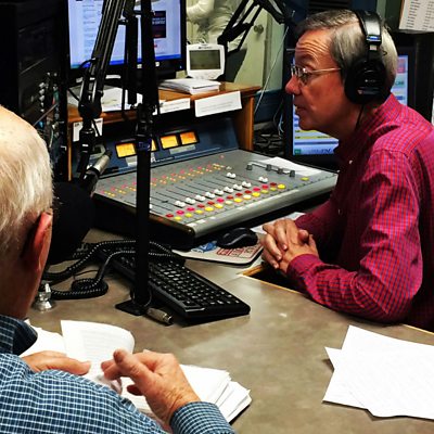 How one small commercial radio station keeps French alive in the bayous of Louisiana. (Photo: Jim Soileau, left, and Mark Layne are at the mics on an early Wednesday morning during "La Tasse de Café". It’s a radio programme on Louisiana’s KVPI station. Credit: PRI’s The World)