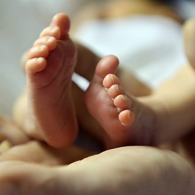 Unconventional maternity nurse Shiela (Julia Davis) and Rita (Marc Wootton) check up on the new mum.