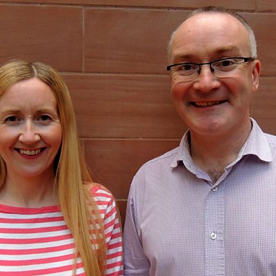 Iain Urchardan a' còmhradh ri neach-ionnsachaidh na seachdain Gillian Hendry.