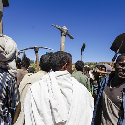 Around the world, individuals swim against the tide to try and improve their lives, in dispatches from correspondents and writers, introduced by Pascale Harter. In this edition: Quentin Sommerville meets survivors - and losers - trying to crest the wave of Libya's migrant crisis, which has turned the Mediterranean into the world's most lethal migration route; Chris Haslam joins a work party to find out how Ethiopia's Tigray region is fighting drought and desertification with terracing; Anu Anand struggles for breath in New Delhi and reflects on poor air quality in India; and Ian Pannell joins the long lines of people outside Venezuelan shops, looking for subsidised goods and good deals. Photo: a group of men from the village of Abr'ha Weatsbaha, Tigray region, Ethiopia, take up their tools for a day's collective labour shoring up terracing nearby. The work helps to keep the land fertile and reduce drought. (C) Chris Haslam