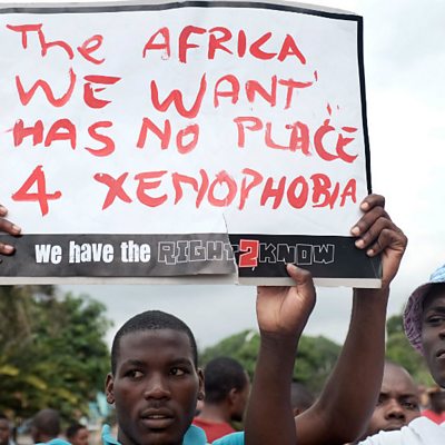 Willy from DRC lives in Durban, South Africa. His shop was attacked and ransacked. Pic: Protests in Durban Credit: AFP