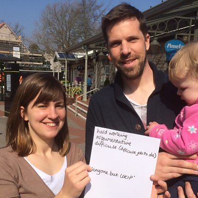 BBC Somerset's James Craig visits Clarks Village shopping centre in Street armed with our Election Mini Bus and just one question: how would you describe politicians in just three words?